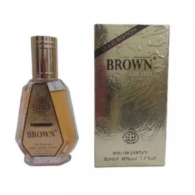 عطر براون ارکید گلد فراگرنس ورد 50 میل BROWN ORCHID gold . .این عطریکی ازپرفروش ترین های این برندمی باشد که می توان دردسته بویایی تندشرقی طبقه بندی کرد . وبه سبب رایحه گرم وشیرینش انتخاب مناسبی برای مهمانی های شبانه . برند فراگرنس ورد حجم 50میل جنسیت مردانه وزانه رایحه گرم وشیرین مشابه عطرتام فورد توباکو وانیل فصل فصول سرد کشورسازنده امارات . رایحه اولیه:تنباکو،رایحه های تند رایحه میانی:باقلا تونکا،شکوفه تنباکو،وانیل،غلاف کاکائو رایحه پایه:میوه خشک شده،رایحه های جنگلی