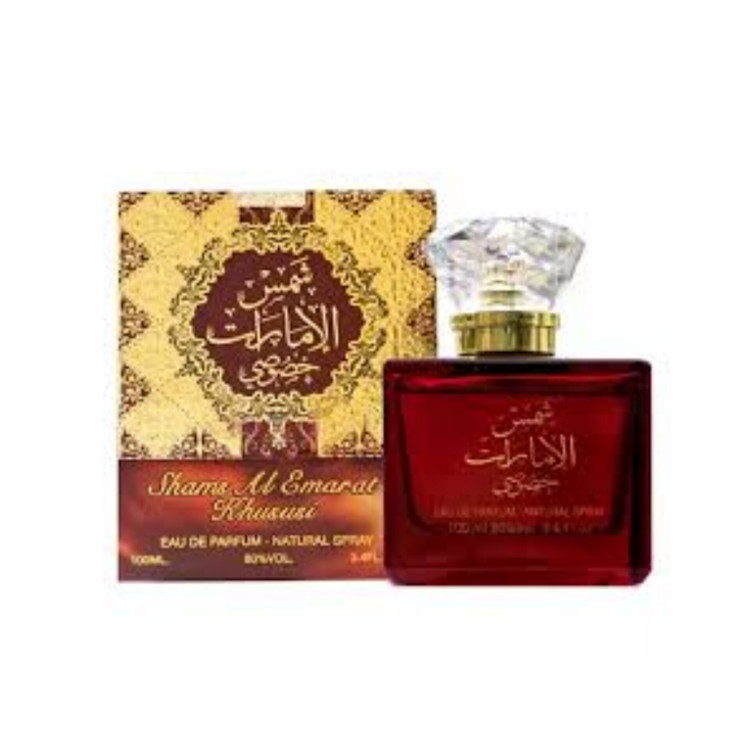 عطر ادکلن شمس الامارات خصوصی زنانه ارض الزعفران برند ارض الزعفران حجم 100 میل جنسیت زنانه رایحه شیرین و شکلاتی فصول سرد کشورسازنده امارات . رایحه اولیه:گل رز،سیب سبز رایحه میانی:وانیل،ادویه جات شرقی رایحه پایه:مشک سفید،عود،عنبر . عطر شمس الامارات خصوصی عطری است زنانه و جذاب با رایحه ای شیرین و شکلاتی.این عطر برای بانوان شیک پوش و خوش سلیقه طراحی شده است و از رایحه قوی و ماندگاری برخوردار است و مناسب برای استفاده درمهمانی ها و شب های سرد و برفی زمستان انتخاب بسیار خوبی است