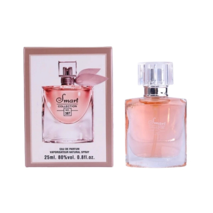 ادکلن لانکوم لا وی است بل اسمارت کد ۳۸۷ La Vie Est Belle یک عطر زنانه از خانواده عطر های گلی ترکیبات میوه ای می باشد که توسط شرکت Lancome در سال 2012 به بازار عرضه شد. \r حجم : ۲۵میل\r مناسب برای بانوان\r نوع رایحه : شیرین و ملایم\r ساختار رایحه : گلی ، میوه\r برند اسمارت \r محصول کشور امارات \r °نت آغازی : توت سیاه ، گلابی\r °نت میانی : زنبق ، گل یاس ، شکوفه پرتقال\r °نت پایانی : وانیل ، بادام سوخته ، نعنا هندی ، لوبیا تونکا