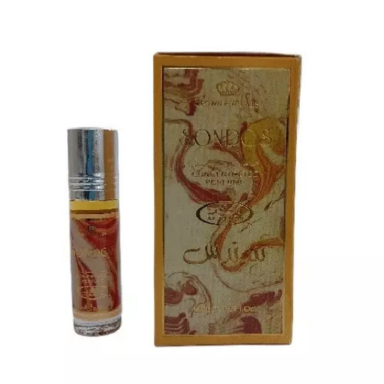 عطر سندس حجم 6 میل محصول شرکت الرحاب با رایحه شیرین و ملایم ساخت کشور امارات اسانس اولیه : چوب صندل، یاس اسانس میانی : گل رز، زعفران اسانس پایه : مشک ترش، عود