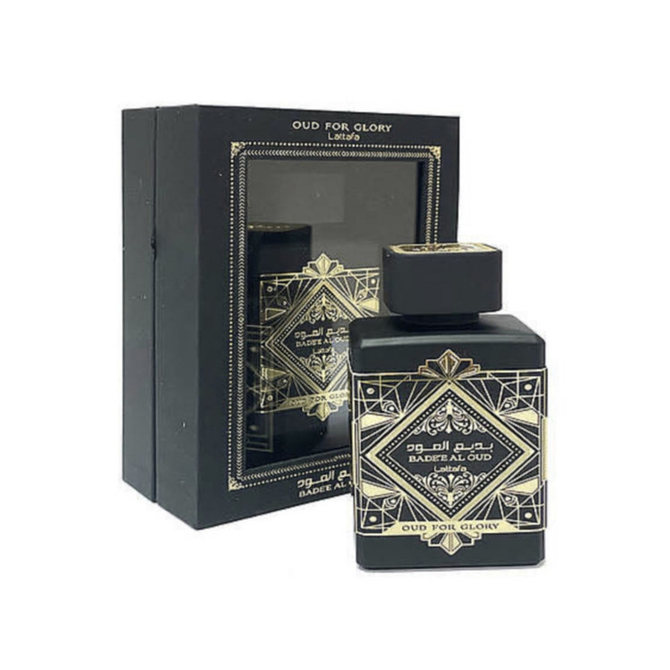 ادکلن مردانه لطافه مدل بدیع العود مشکی رایحه عود فور گلوری حجم 100 میل