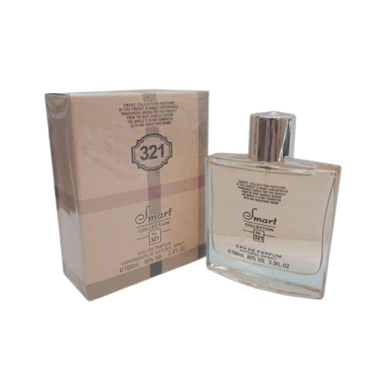 عطر زنانه اسمارت کالکشن 321 باربری لندن (Burberry London) حجم 100 میل نوع عطر ادو پرفیوم - Eau de Parfum مناسب برای بانوان نوع رایحه گرم ، شیرین طرح ادکلن باربری لندن زنانه نت اغازی نارنگی ماندارین, گل رز نت میانی کلمانتین, گل صد تومانی, گل یاس نت پایانی مشک, نعناع هندی, چوب صندلی